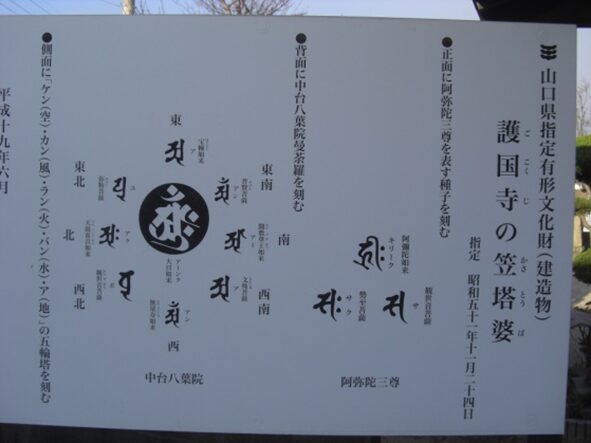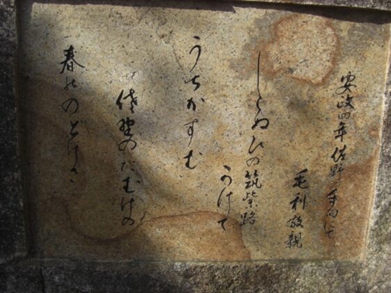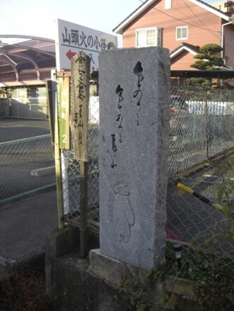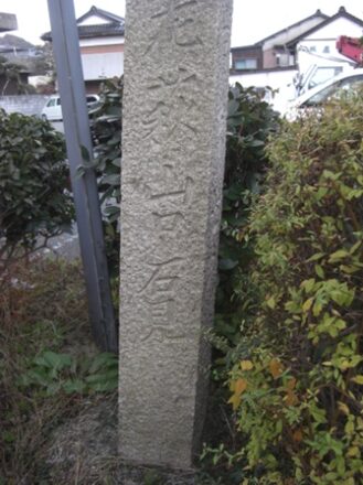 右角に 道標 「左 萩山口石見 右 京江戸」 さらに一面には「牛馬繋事無用」と刻まれている江戸時代の道標で、小郡は山陽道の主要な宿駅であって、山口から萩や石見国に通じる街道の分岐点であった。この分岐点を示す標示としての道標