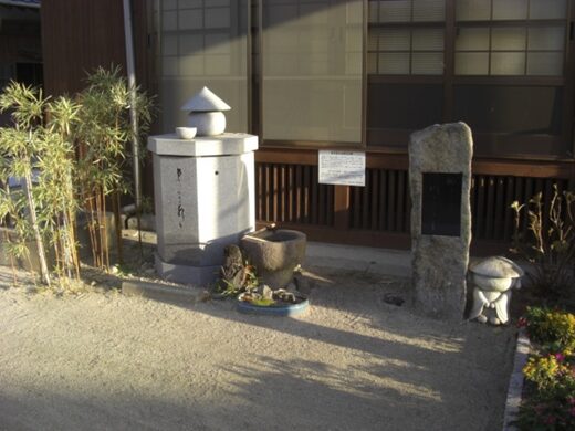 種田山頭火生家跡と休憩のできる建物の中に碑