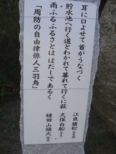 護国寺門前の周防の自由律俳人 三羽鳥の句碑