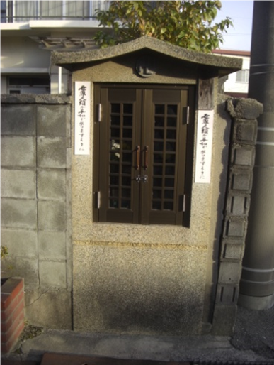 下市にあるのは外観が仏堂に見え、中に神殿風の祠が納められ、前に灯籠があったが、現在橋本橋の西に移転している。(説明文より)その横に 庚申