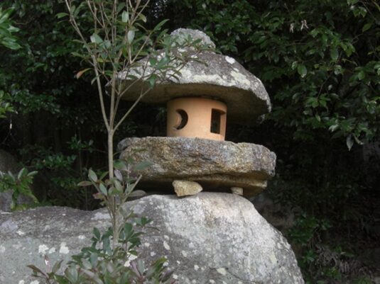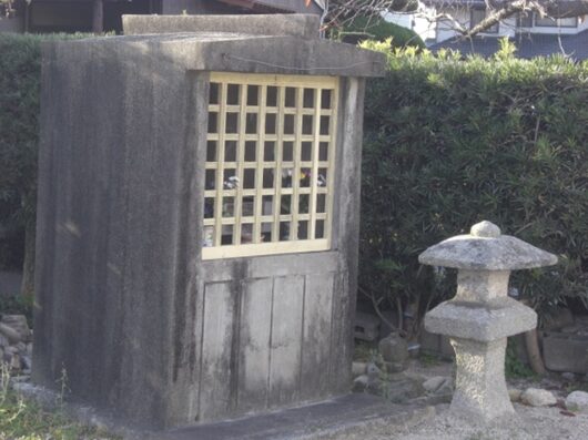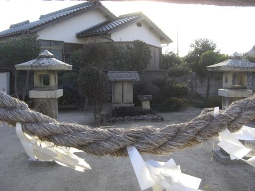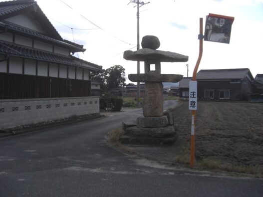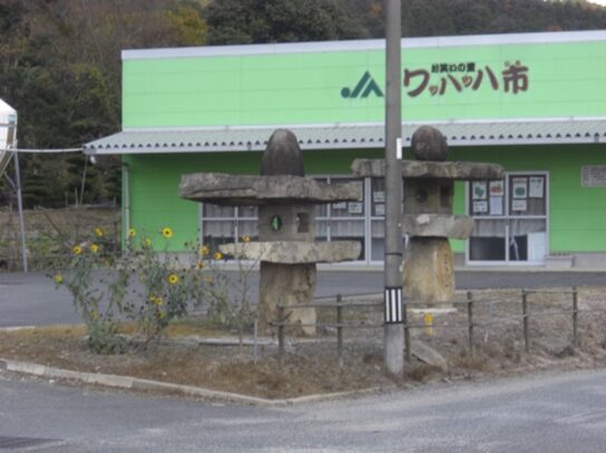 背後の高台に七尾自治会館祠の傍にある 灯籠