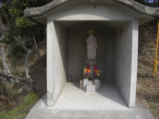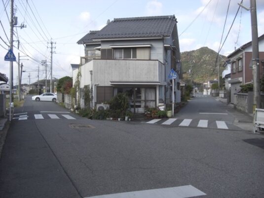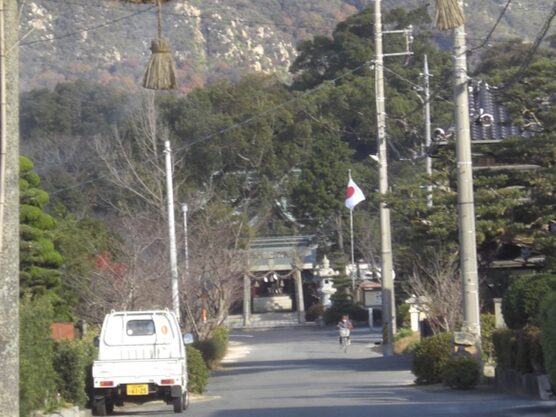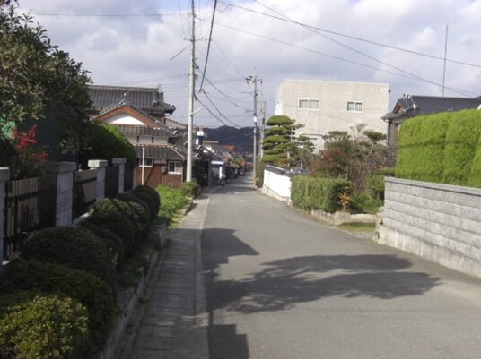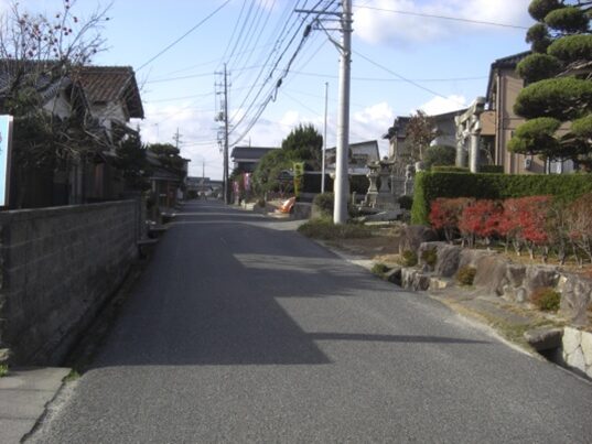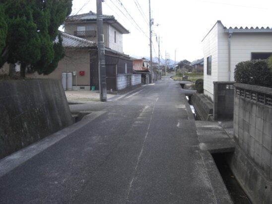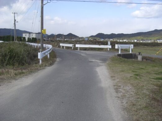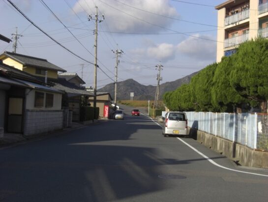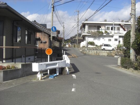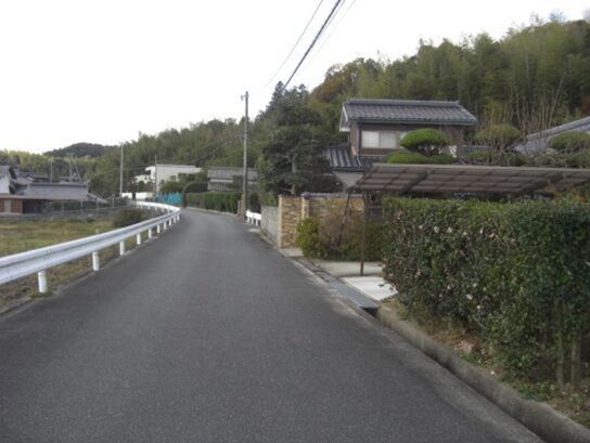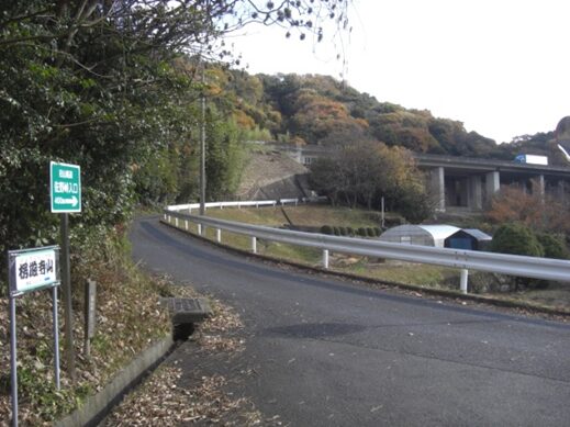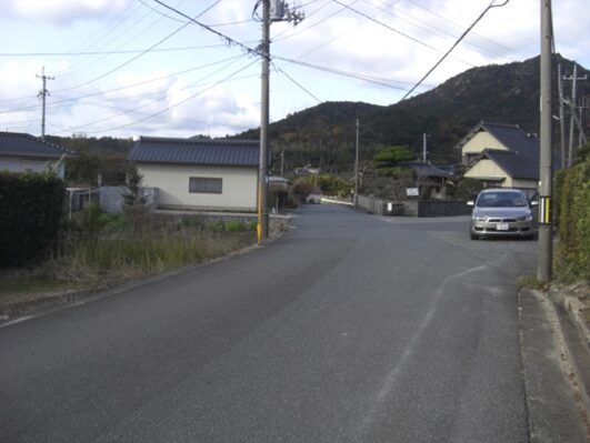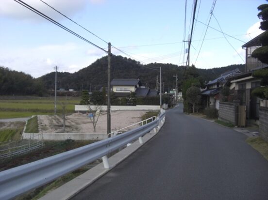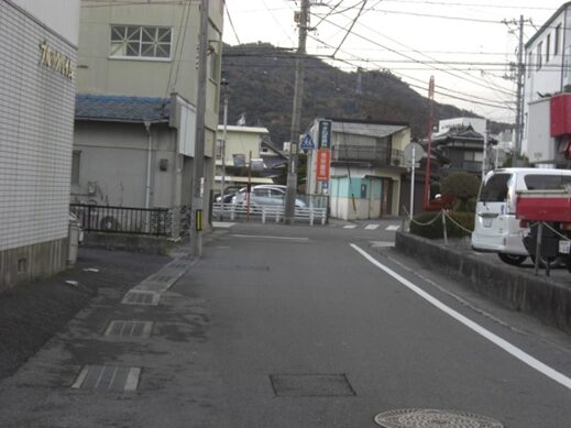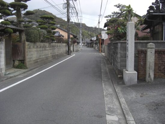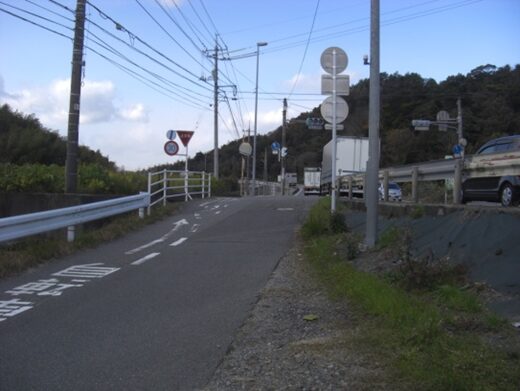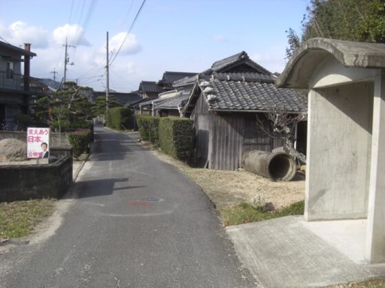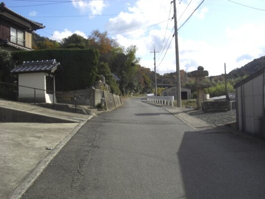 祠のすぐ先左から道路が合流します。左から合流する道は、三田尻港からの近道の旧道