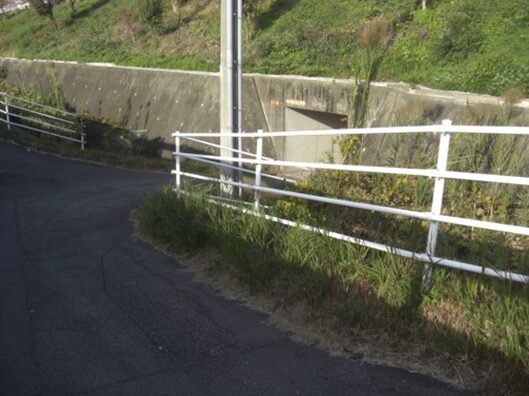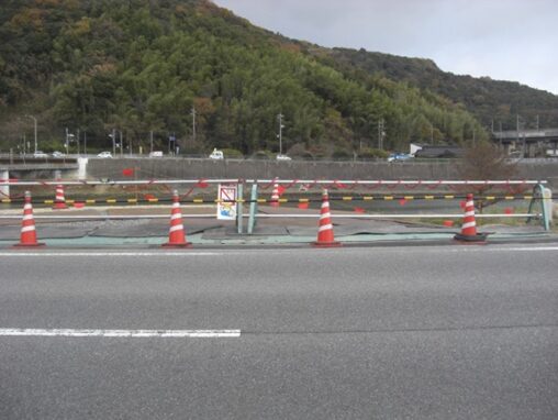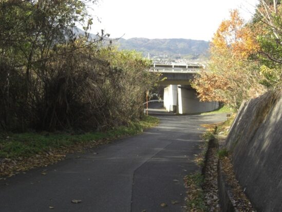 大崎橋を渡るとすぐ、山陽自動車道と国道2号線が並行して走っているので道は遮られ、堤防道より下り地下道に入り潜ります