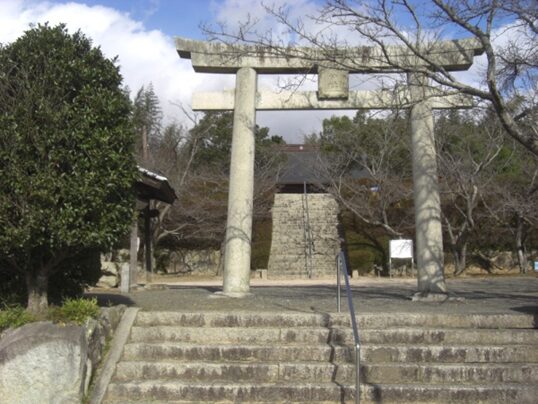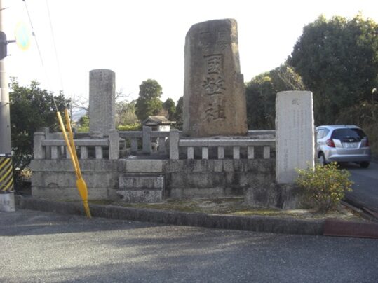 少し進むと右の玉祖神社参道入口に大きな 石碑 が建っています