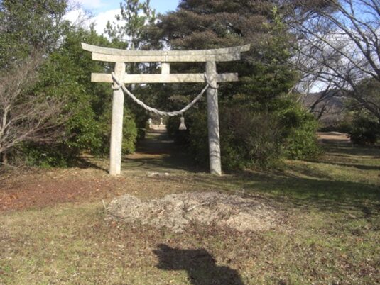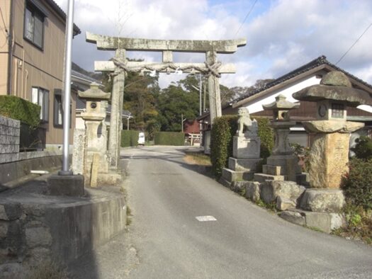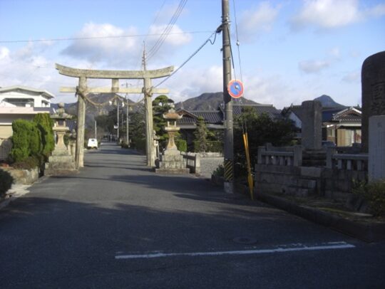 橋を渡った右手に 春日神社の鳥居 があります。この辺りに 陶一里塚跡 があった