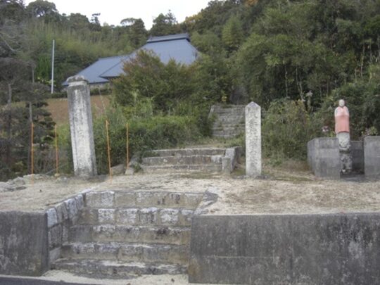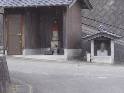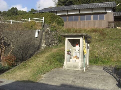 集落に入ったところで左にカーブしますが、その正面右高台に