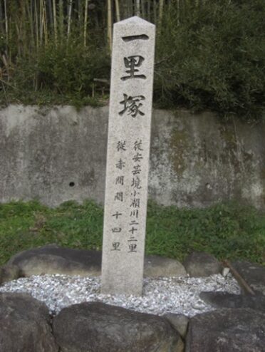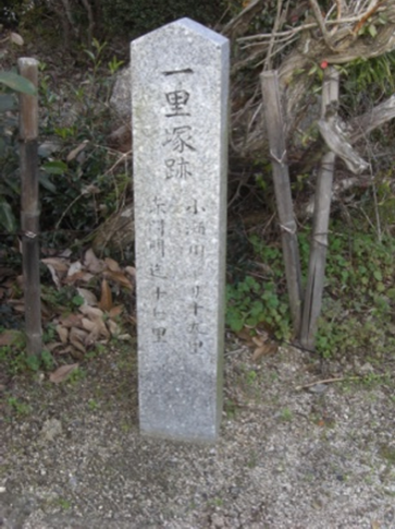 すぐ先右手に 石ヶ坪一里塚跡碑(場所は想定)「従安芸境小瀬川二十二里 従赤間関十四里」