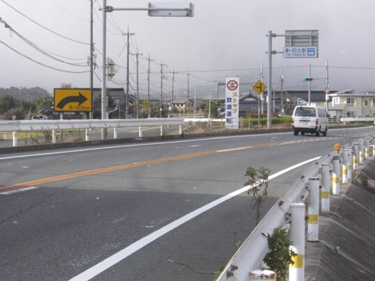 少し先で右に少し入り国道2号線の四辻信号交差点に出てそこから北に入っていくと