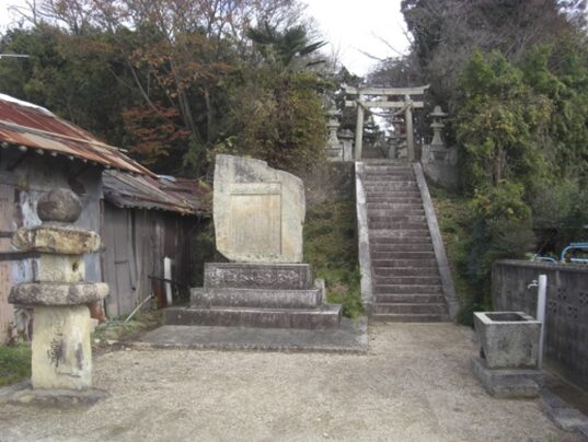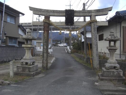 上市にある社は社殿の形式によるもので、付近に鳥居の残欠・灯籠・手洗鉢があり、鳥居の柱には文化元年(1804)と刻まれています。