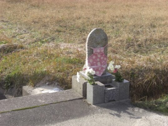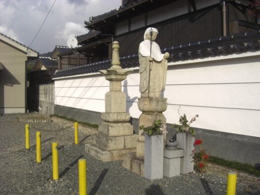 そのすぐ先右の市自治会館前に 地蔵立像と宝篋印塔