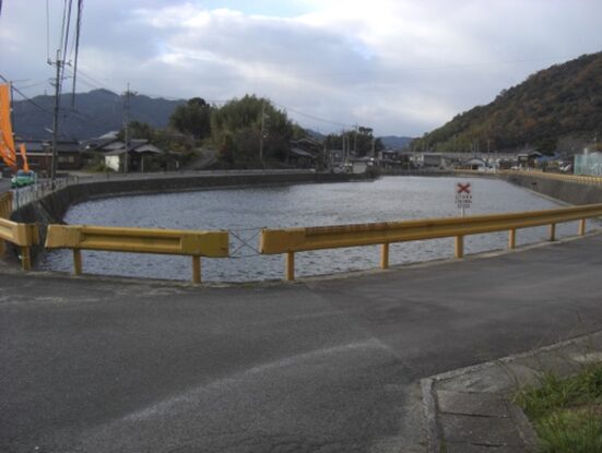 右に折れて暫く進むと、左に市立陶保育園、右に丸尾上会館のある辻を北西に進んでいきますと、右に細長い池の南側の端の堤道に出ます。右に折れて暫く進むと、左に市立陶保育園、右に丸尾上会館のある辻を北西に進んでいきますと、右に細長い池の南側の端の堤道に出ます。そして南西端で右に折れて、池の堤道を北西に沿って進みます