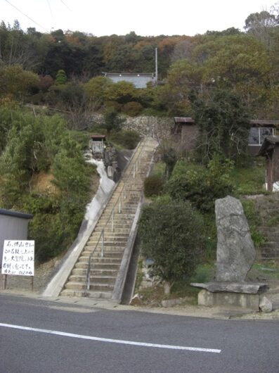 高架を潜ったすぐ先右手に高台への急な長い石段があります 大聖院 行きたいが足も疲れているし下から拝みます