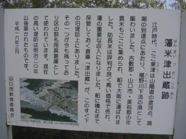 ここはもっとも古くから発達した宮市発祥の地です。参勤交代時、萩と三田尻を結ぶ街道「萩往還」の道筋に当たり、三田尻の御船倉・御茶屋へ向かう等、人の通が絶えることないほど、商いも多く、周防第一の通りとして大変賑わった町だそうです。