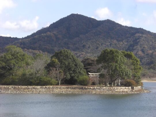 元の街道への途中、長沢池に突き出た弁天様に入ると 鳥居があります