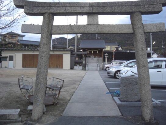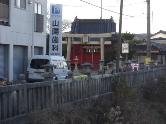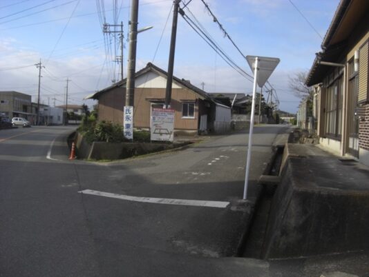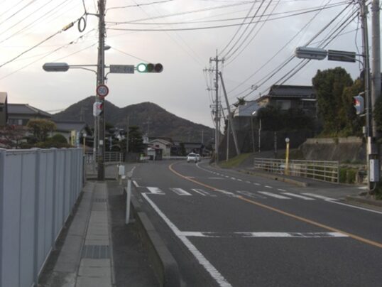 水神社のすぐ先で山陽新幹線・山陽本線の高架を潜り進むと、250m程先の十字路に出ます