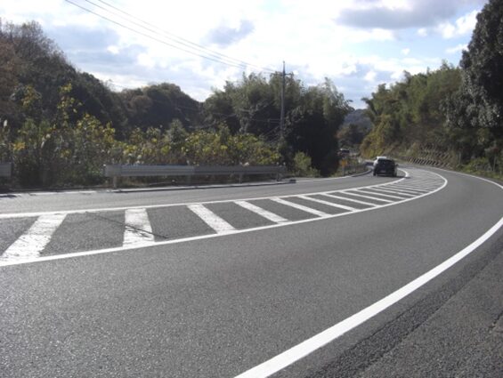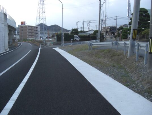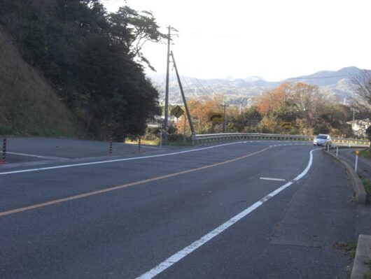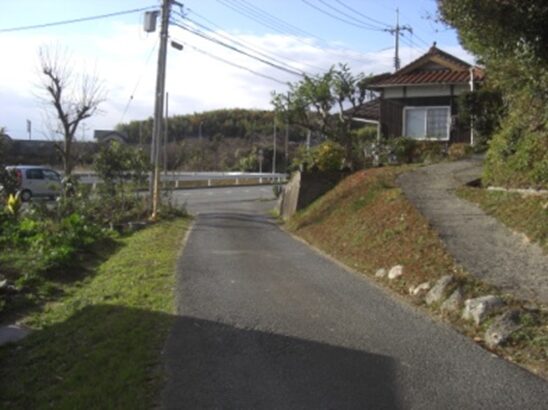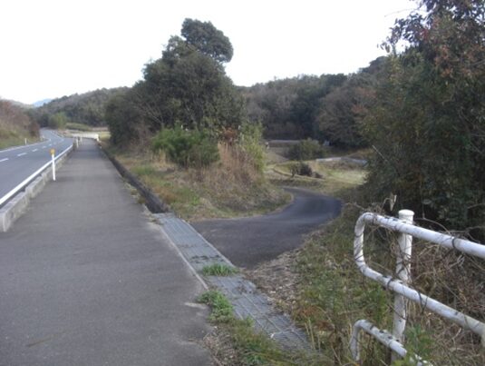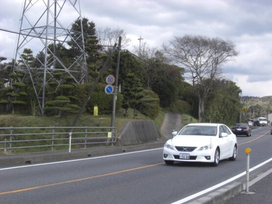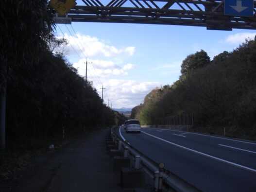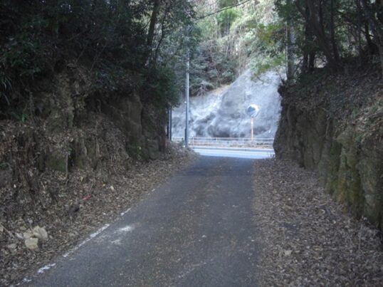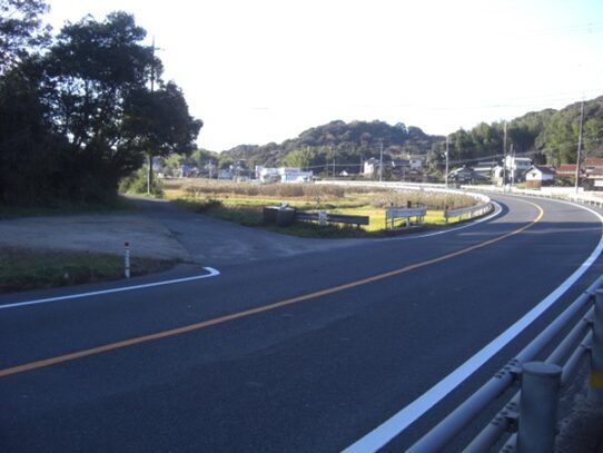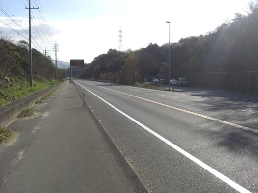 途中分岐がありますが左の道は国道2号線方向ですので真っ直ぐの右の道を進みます。その先で正面の2号線を見て右に方向を変えます。荒神峠 への緩やかな上り坂を進みます