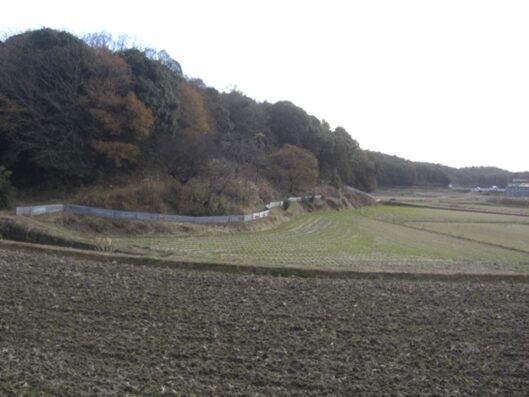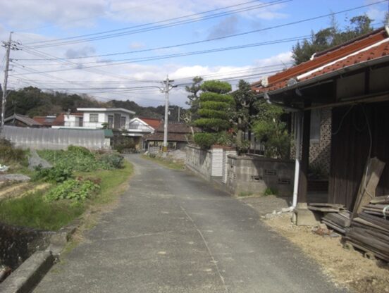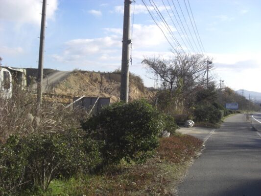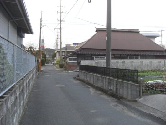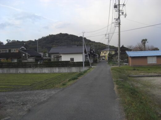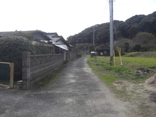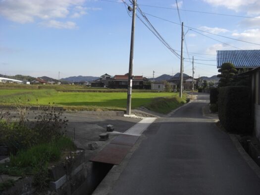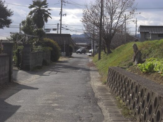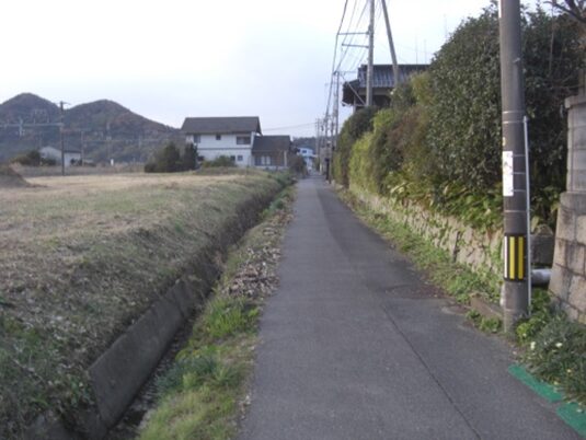 厚狭駅南側の真っ直ぐの道を西に進みます。駅の南側一帯は 古代律令制条里遺構 といわれている、現在厚狭駅南側は広々とした開発地となっていて、往時の田園区画風景は見られないが、その遺構がなんとなく想像できるが、この先開発が進むと全く想像すらできなくなるだろう