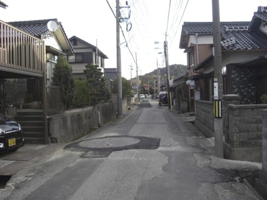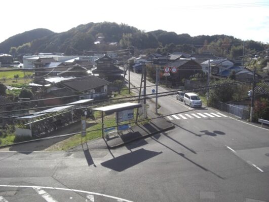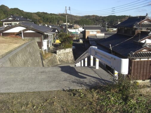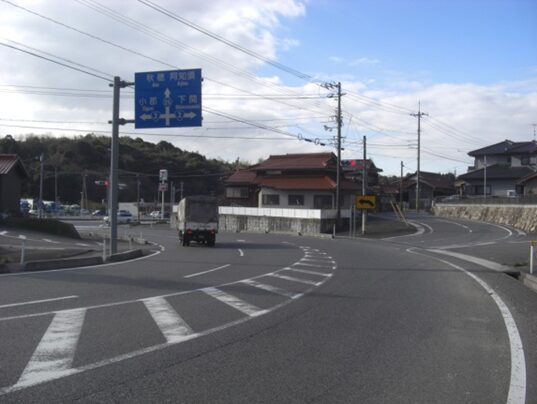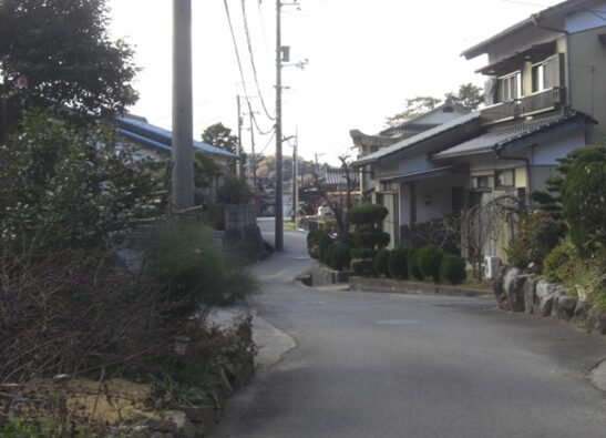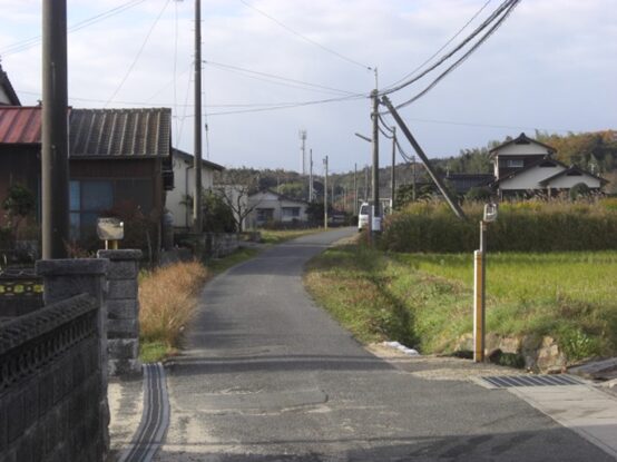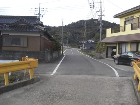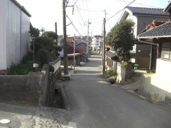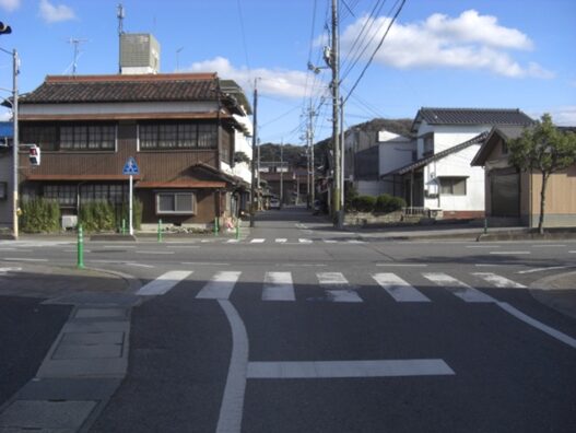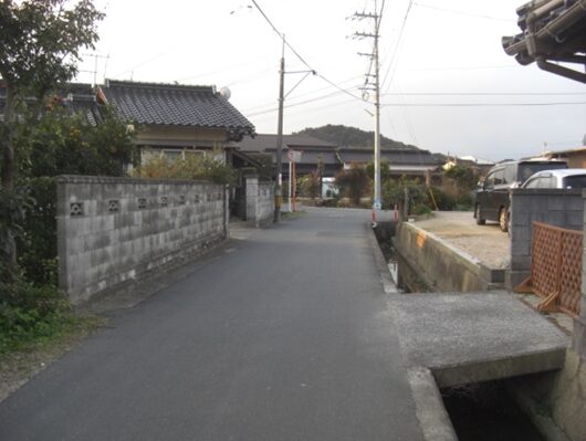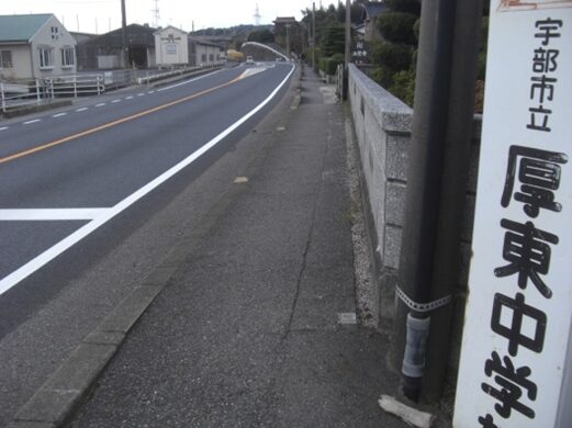 すぐ先で街道は左T字路を右に折れて坂を下りながらすぐ左に折れる、鍵型の道になっています。この先はかつての厚狭宿に入ります