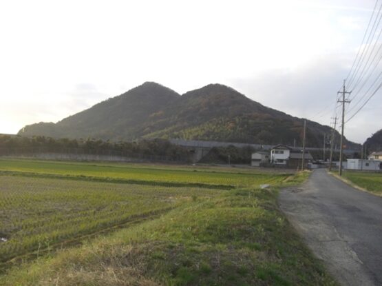 前方に形の良い綺麗な 雨乞山(160m)が見えます、かつての 雨乞山狼煙場跡