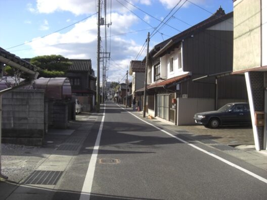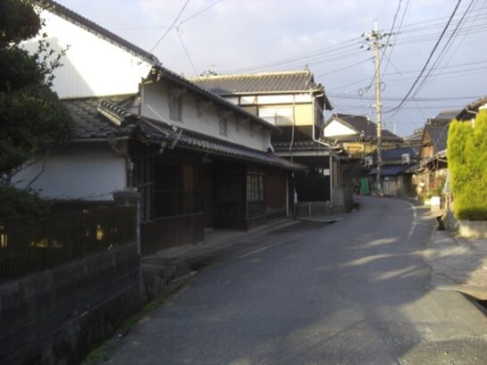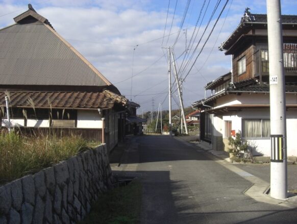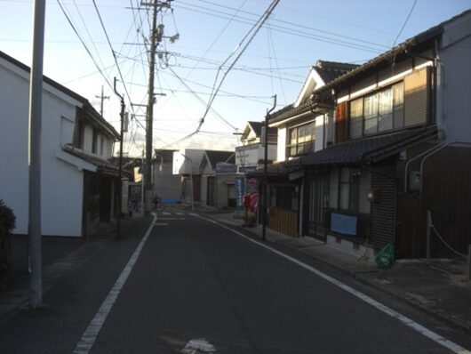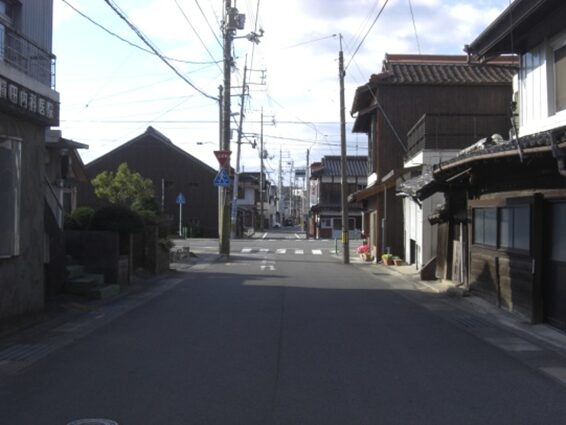 元の街道に戻り、新開の集落を抜け赤坂の集落に入っていきます。新旧の民家が並ぶ落ち着いた旧道の街並みです