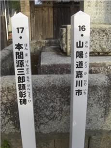 前に 本間源三郎顕彰碑 歴代、庄屋・大庄屋を勤めた旧家の十三代目