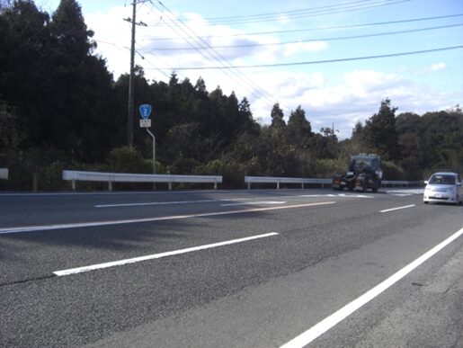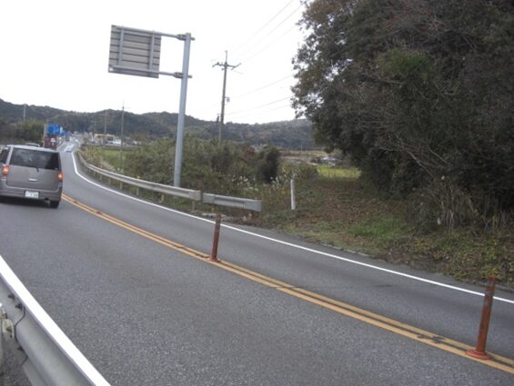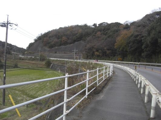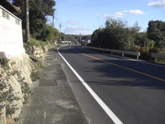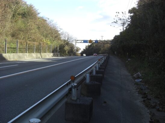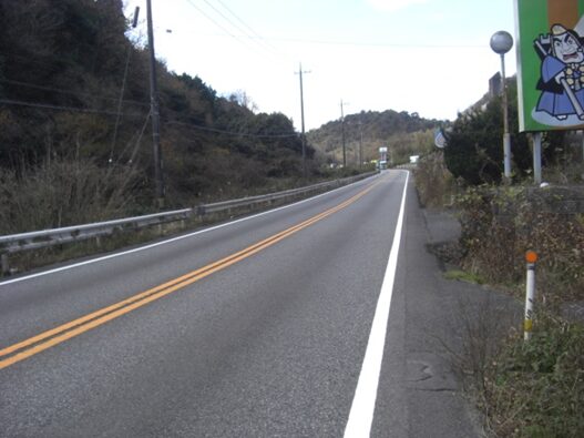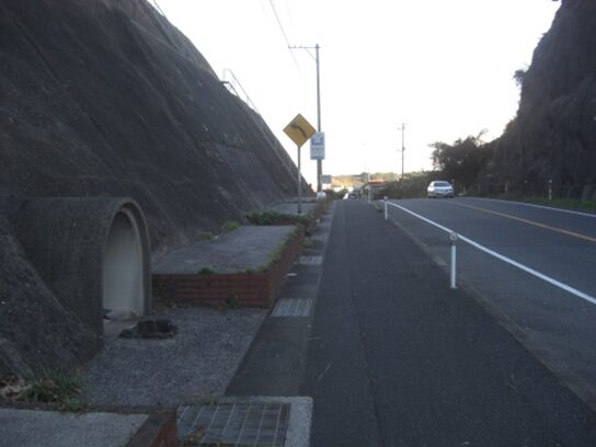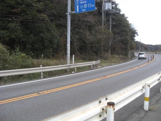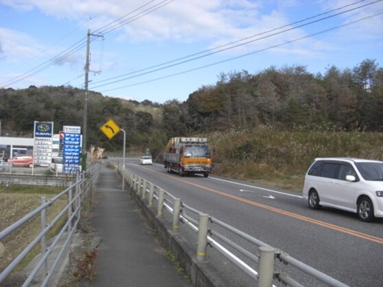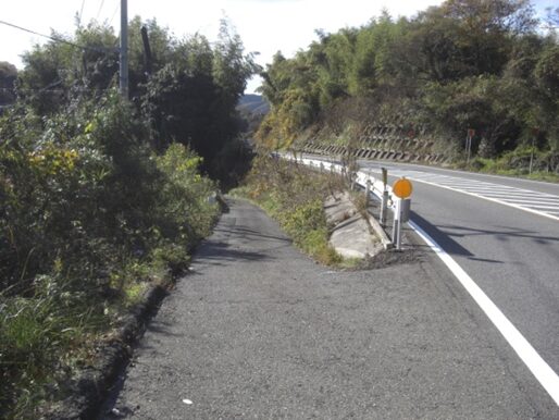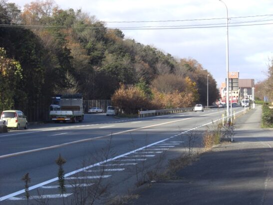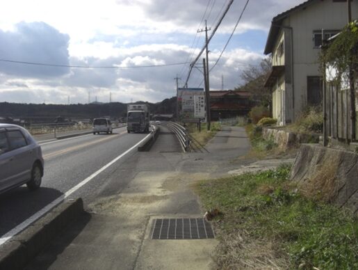 国道に側溝があって蓋をしていないので歩道はありません。銭ヶ原信号の先は、かつての旧道は数m右に平行してあったようです