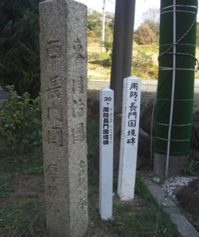 おいはぎ峠のすぐ先右手に 周防長門国境碑「東周防國吉敷郡 西長門國厚狭郡」 現在は山口市から宇部市に入ります