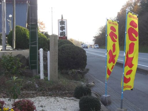 国道は上り坂になります、坂の頂上手前右においはぎ峠食事処があります