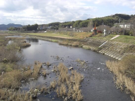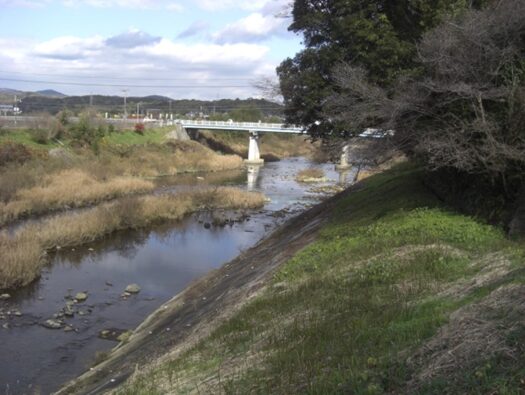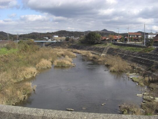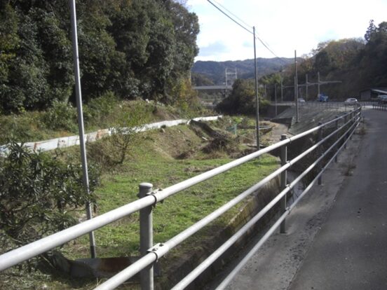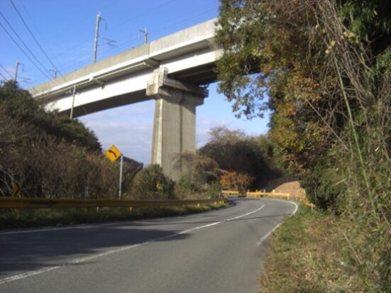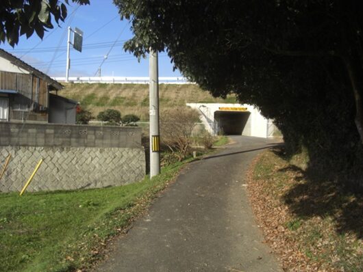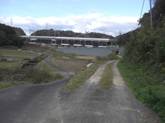 迂回してやがて右に弓なりに蛇行した先100m程で、西に方向を変えて山陽新幹線の高い高架下を潜ります