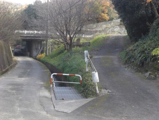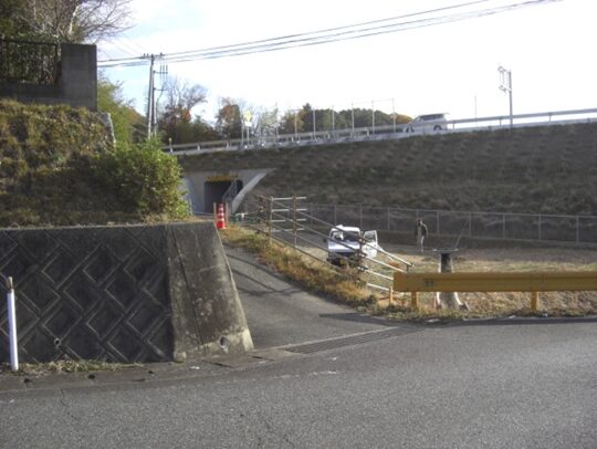 335号線に合流せずそれた道です、分岐から150m程弓なりに進むと、前方に新しく完成した山口宇部道路の高架下にトンネルが見えます。旧道が遮断されているので迂回できなくトンネルを潜り西側に出ます