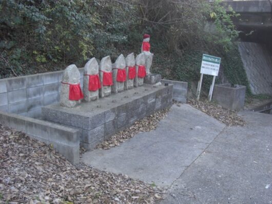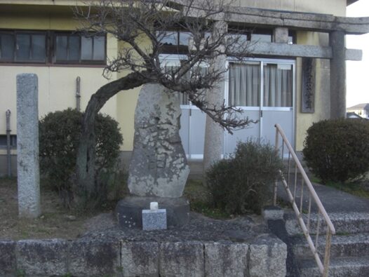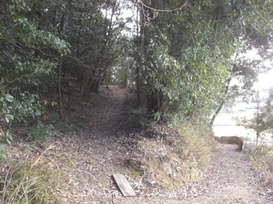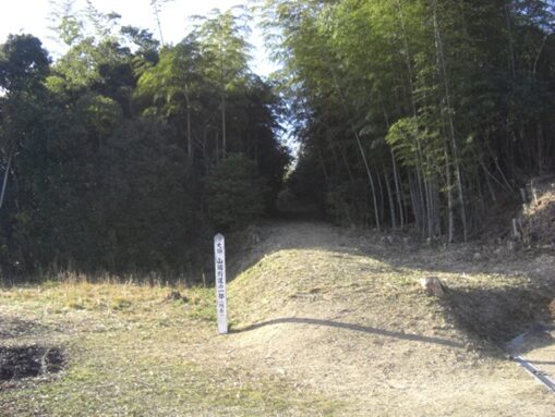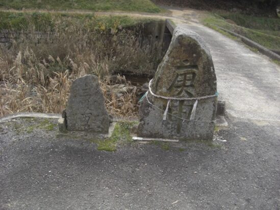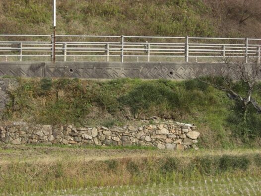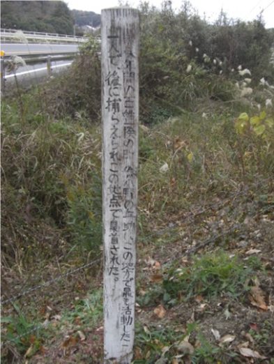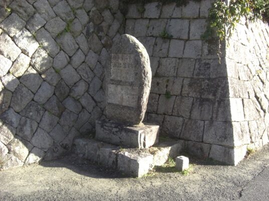 左手一段高いところの木に覆われた下に 小郡開作道路改修記念碑