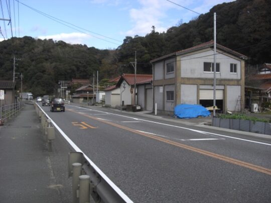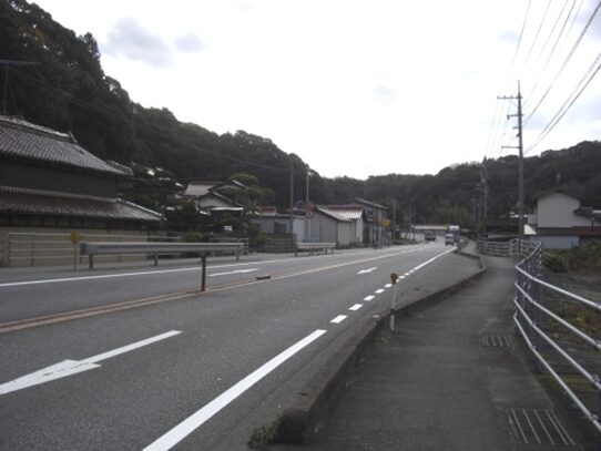 再び右の国道に合流して、車に注意しながら国道の北側の歩道に横断、そこから振り返ったところです。旧道といっても今の国道以前の旧国道跡で旧街道でないと思うので無理せず、国道を素直に歩いていけばいいかも