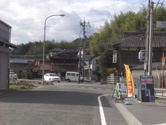 やがて左斜めに道は方向を変えますが、その辻を少し右に入っていきますと、335号線の嘉川赤坂の信号交差点があり横断して左に折れすぐ右に行きますと