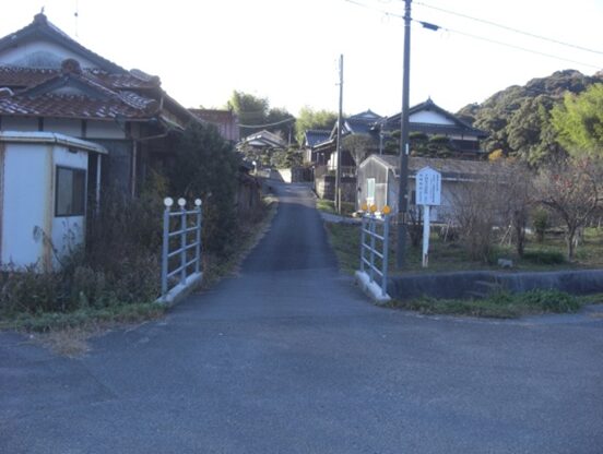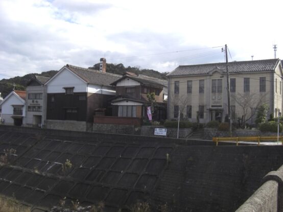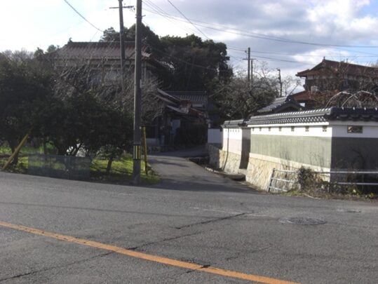 道を挟んだ左は 朝陽館跡 享和二年(1802)には九代房晃が郷校を創立したもの