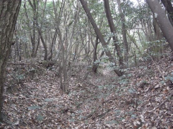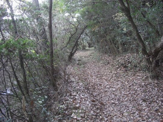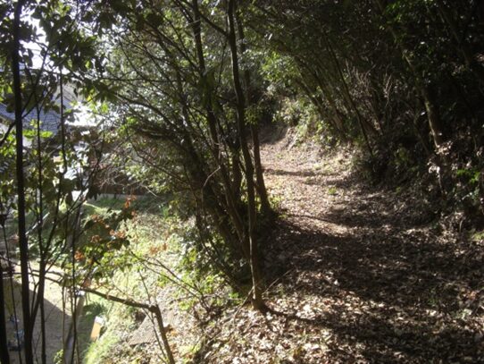 荒神峠といってもあまり急坂ではないです。途中右にカーブするところを振り返る。峠の頂上あたりでも分岐しますが右(西)の旧道を進みます