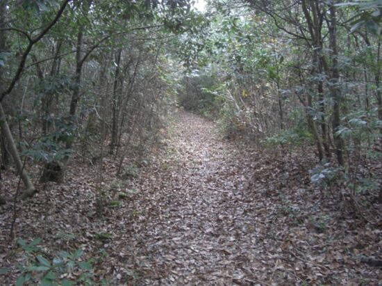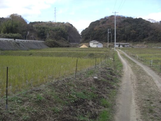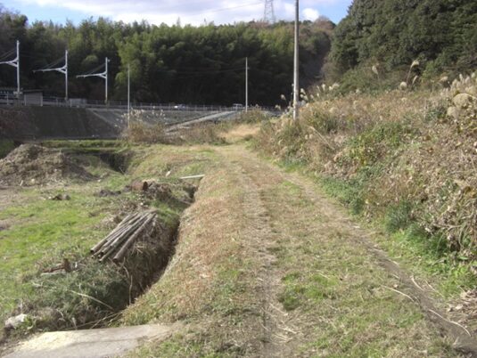 旧道は池を巻きながら右にカーブして、その先での分岐を左の道を進み池と離れ西に進みます