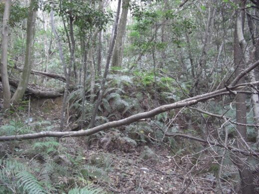 また峠右(北)手、岩石採掘場辺りに 割木松狼煙場跡 がありました