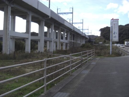130m程先で厚狭駅東側の、山陽新幹線や山陽本線で旧道は消失して行き止まりです