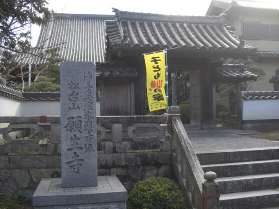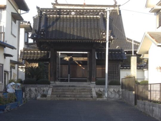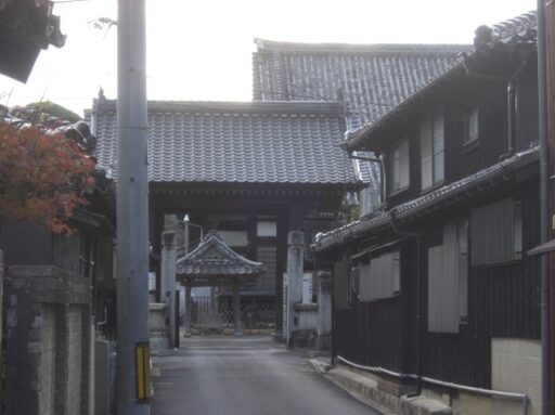 十字路を150m程左(南)に進むと右に 浄土宗無量山貞源寺 厚狭毛利二代元宣の室を祀る、本堂向拝口は毛利本家の玄関を拝領移築したもの