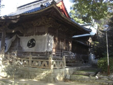 境内に 円墳の古墳があり、高さ5m直径が約40mあります。推定で五世紀ごろの築造と伝わる。古墳の上には、椎や梛木の木が生い茂っています。また古墳の頂上にある熊野神社は、室町時代に紀州熊野大社を勧請して建立したものです