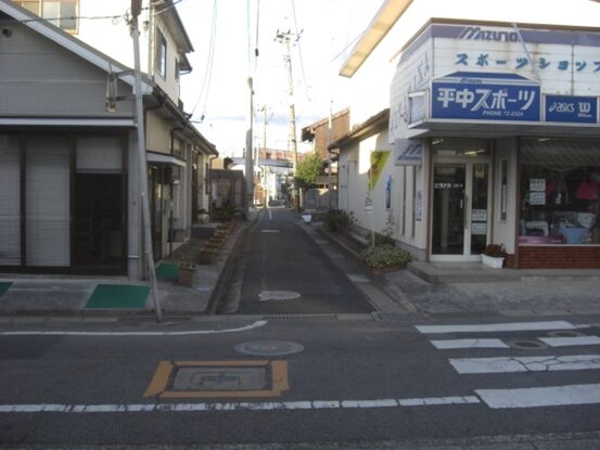 さらに西に進むと左T字路で、右手前角にスポーツショップがあります