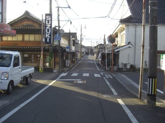 すぐ先左に川東会館。右に永山酒造を見て少し進むと、十字路に出ます