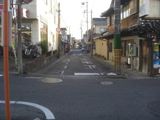 店の前を西に進むと細い旧道が残っています、旧山陽道の 千林尼石畳路