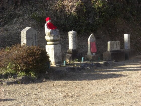 順調に朝から歩いていた街道歩きも、とんでもない峠越えで大失敗。「どんだけ峠」というところ距離も余りない峠入口でハッキリしない旧道で多分左方向に進むところを真っ直ぐヤブをかき分け登って行った、途中で変だと思ったがもう少しもう少しと思っている間に、前後左右を見れば背丈以上のトゲなどがある藪の中に入っていた。一瞬頭の中が真っ白、引き返すにも今来た道は(道でないヤブ)分からない、冬場であるし今では熊も出ないし嫌いな蛇もいないだろうから落ち着くことに一生懸命気持ちを抑えて考えた。左へいくところを真っ直ぐきたのだから、左方向にイバラの藪があるが中をかき分け進むと、先に少し明るい部分が見えたその方向に必死で進むと細い地道にでて、その向かいに古い墓地がある、資料には墓地のそばの細い地道が旧道となっていたので助かったと思った。
