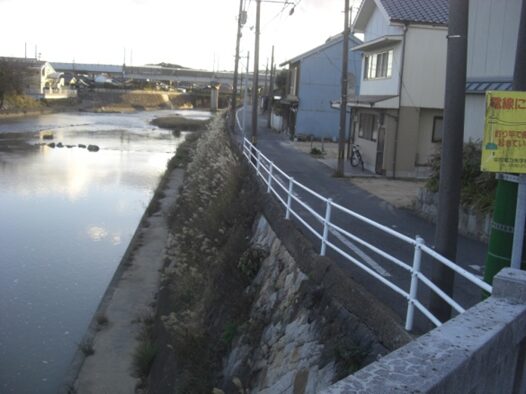 元の分岐のT字路の戻り迂回します、川沿いに進み山陽新幹線・山陽本線の高架を潜り道なりに、右(西)にカーブして進むと