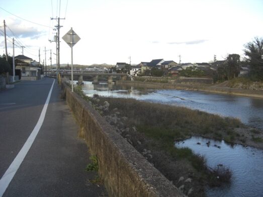 左に折れた街道、橋の下流側の付近はかつての 渡河点 でした