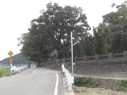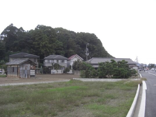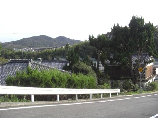 国道2号線の今宿西交差点近くからの高岳神社の杜を見たところです