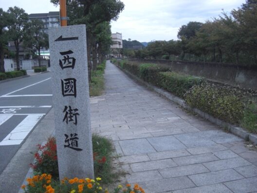 少し先右に下手野町公民館があり、その前街道沿いに新しい西国街道の 石碑