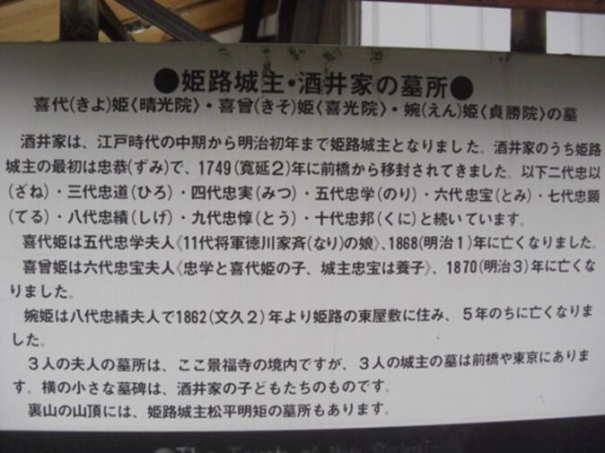 元は摂津国にあったが天正年中に戦火を避けて姫路に移り、池田輝政の築城時に坂田町に寺を建てた。その後、姫路藩主酒井家の菩提寺となる。境内には、酒井忠学の室、十一代将軍家斉の娘喜代姫・その娘喜曽姫(藩主酒井忠宝の室)・藩主忠績の室婉姫の墓がある。