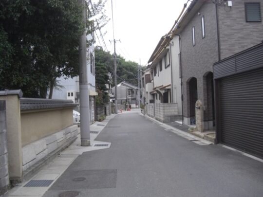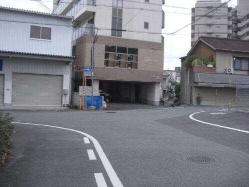 高い建物を正面に見て道が分岐しますので、右の道に入ります